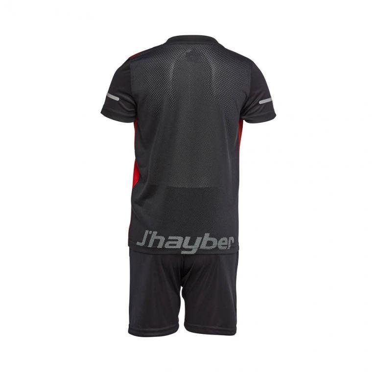 Camiseta deportiva para niños en color rojo y negro, fabricada en tejido resistente y ligero. La camiseta está confeccionada con poliéster para garantizar su rápido secado, y con elastano, que favorece la elasticidad y flexibilidad, por lo que son perfectas para la práctica de todo tipo de deportes. Esta camiseta técnica está fabricada con la tecnología SINCRONIC, que evita arrugas y deformación en los tejidos.